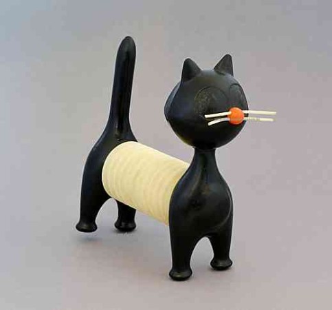 | | |  | | Solche "Ziehharmonika-Katzen" waren in der DDR beliebte Spielzeuge, der Körper lässt sich wie der Balg eines Akkordeons auseinanderziehen. Entworfen von Libuse Nklova und von Fatra in der Tschechoslowakei hergestellt. |
