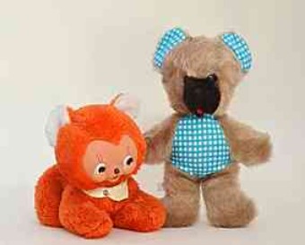 | |  | Katze (?) mit "Gummigesicht" und ein "karierter Teddy"