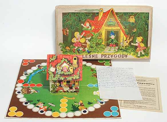 | "Waldspiel" aus der CSSR. Nicht selten findet man bei solchen Spielen private Übersetzungen der Spielregeln. Spielbrett 36 x 36 x 13cm |