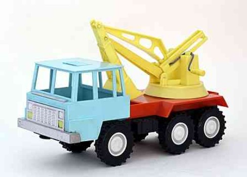 | Kindgerecht farbenfroher einfacher Plaste-LKW "CAMOKOB" aus russischer Produktion, Länge 35 cm |
