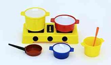 | |  | Ebenfalls aus einem DDR-Spielzeugfundus: ein Import aus Kuba! "Mi Cocinita", Spielgeschirr, 26 x 19 x 7 cm