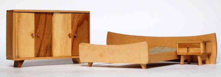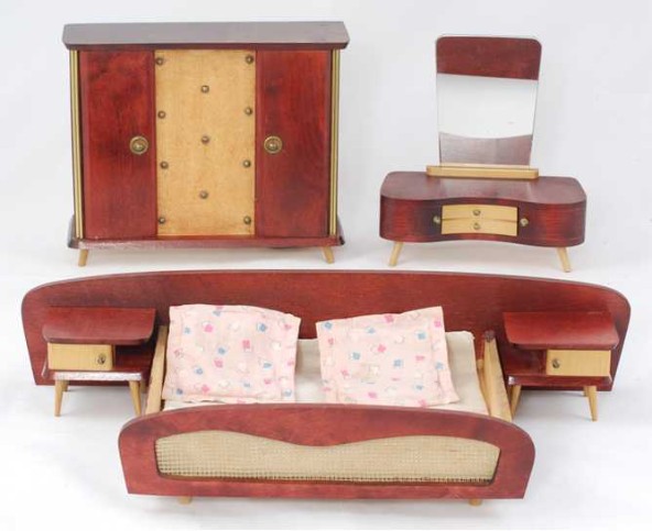 | Schlafzimmer der Crailsheimer Spielwarenfabrik mit ausgesprochen schöner Linienführung insbesondere der Spiegelkommode |
