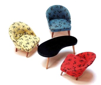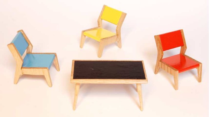 | selbst gebaute moderne Stahlrohrmöbel im Miniaturformat