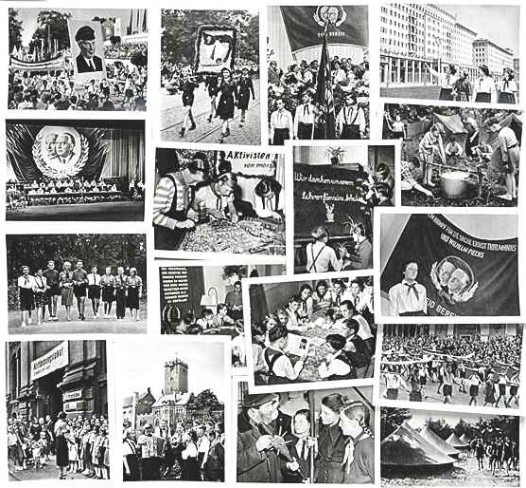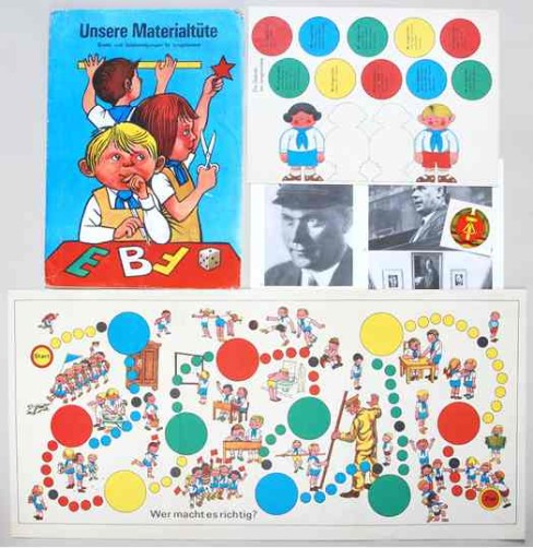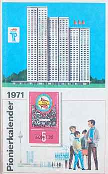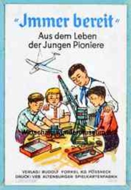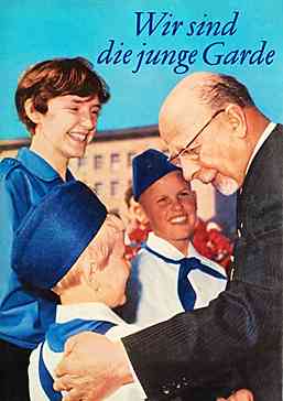 | |  | "Getrommelt und gepfiffen - Ein Ratgeber für Pionierräte" inklusive "Ratschläge des Genossen Walter Ulbricht": "Was heißt es heute, revolutionär zu sein? Das heißt vor allem, den Sozialismus in der DDR zu stärken und zu vollenden; ihn zum Beispiel für die Werktätigen in Westdeutschland zu machen. Eines ist doch gewiß: Was wir heute als unsere Gegenwart gestalten, ist für viele Völker, auch für die Werktätigen in Westdeutschland, noch Zukunft..." | | "Du und Deine Pioniergruppe" |
