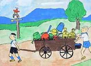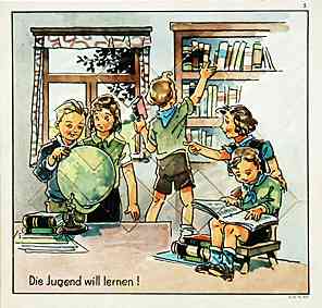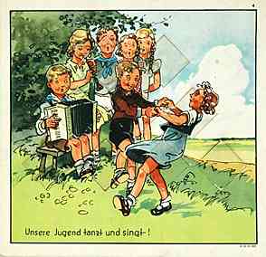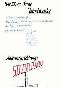 | | "Wertstoffsammlung", Kinderbild aus einem Gruppenbuch (1959) | | "Wir hören keine Feindsender - Antennenrichtung Sozialismus", unterzeichnet von einem "Elternaktiv" - aus einem Gruppenbuch (1959)