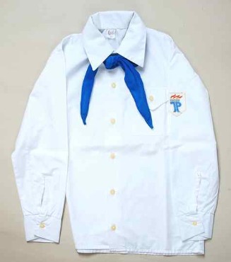 | |  | | Hemd und blaues Halstuch der Jungen Pioniere. Den Knoten habe ich nach einer online-Anleitung gebunden. Bitte um Entschuldigung, dass er nicht perfekt geworden ist... | | "Wir sind die junge Garde", Buch (1971)
