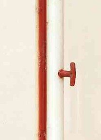 Die Fenster... in "Haus Sonnenschein" (die auch in anderen Häusern / Stuben des VEB Grünhainichen Verwendung fanden) sind ein Thema für sich. Dass alle drei Fensterflügel einzeln zu öffnen sind, verspricht natürlich theoretisch einen großen Spielspaß. - Der durchaus auch in der Praxis erfüllt wird - leider aber nicht von langer Dauer ist. Die Fenster sind für Kinderhände schlicht und einfach zu schwach dimensioniert...Sehr häufig fehlen daher die äußeren Flügel. Und die Griffe sowieso. Hier ist mal einer erhalten geblieben - was mir ein eigenes Foto wert war!