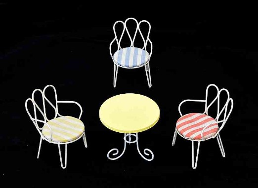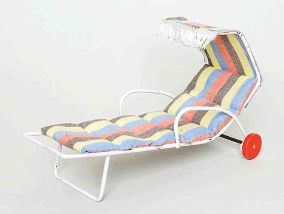 | Diese Sonnenliege, die auch - mit alternativem Bezug - in obigem Puppenhaus zu sehen ist, stammt, ebenso wie die nachfolgenden Gartenstühle, von der Firma Bodo Hennig.