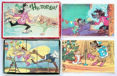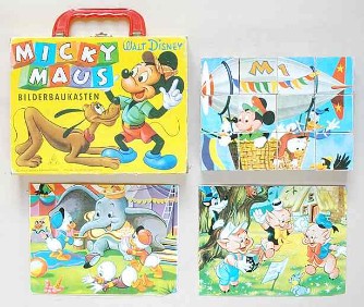 | |  | Sowjetische Einflüsse in ostdeutschen Kinderzimmern (Würfelpuzzle "Hase und "Wolf") | | und amerikanische in den westdeutschen: die allgegenwärtigen Walt-Disney-Charaktere (Würfelpuzzle "Micky Maus") |